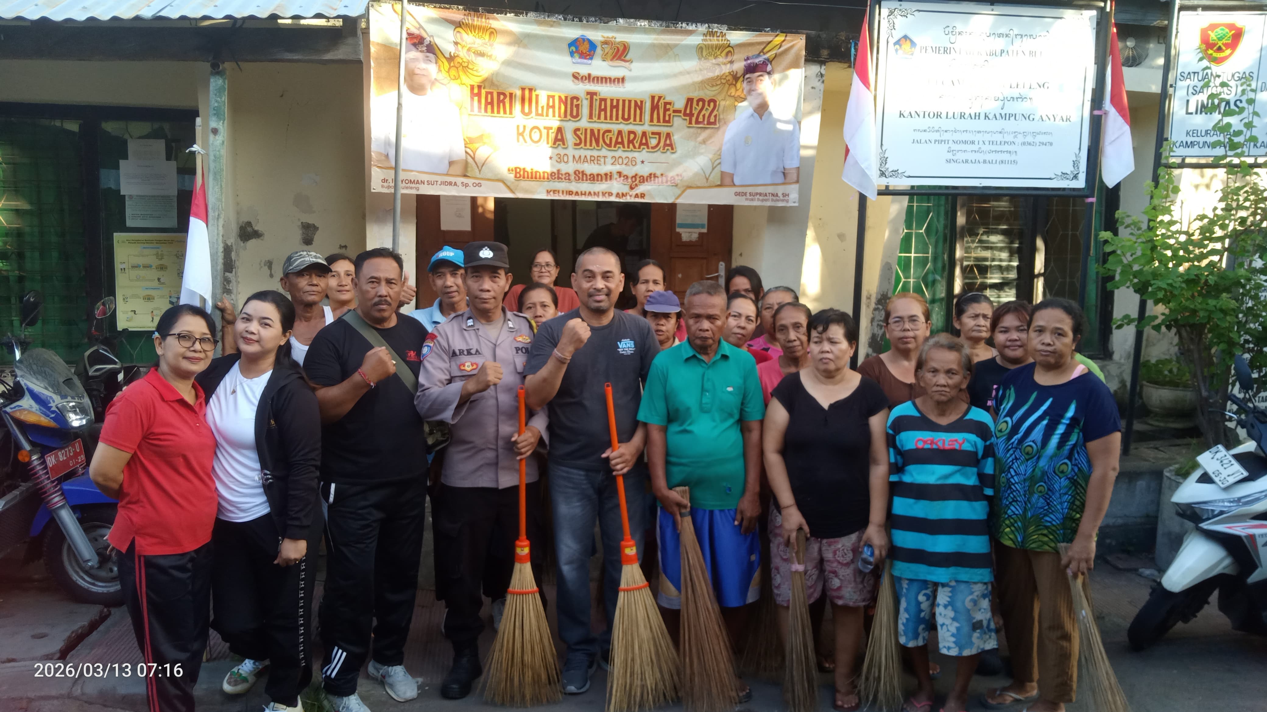 Hari ini, Jumat 13 Maret 2026, Lurah Kampung Anyar bersama staf kelurahan, Ketua RT, Kepala Lingkungan (Kaling), Bhabinkamtibmas, dan warga melaksanakan kegiatan gotong royong di wilayah Kampung Anyar Selatan.